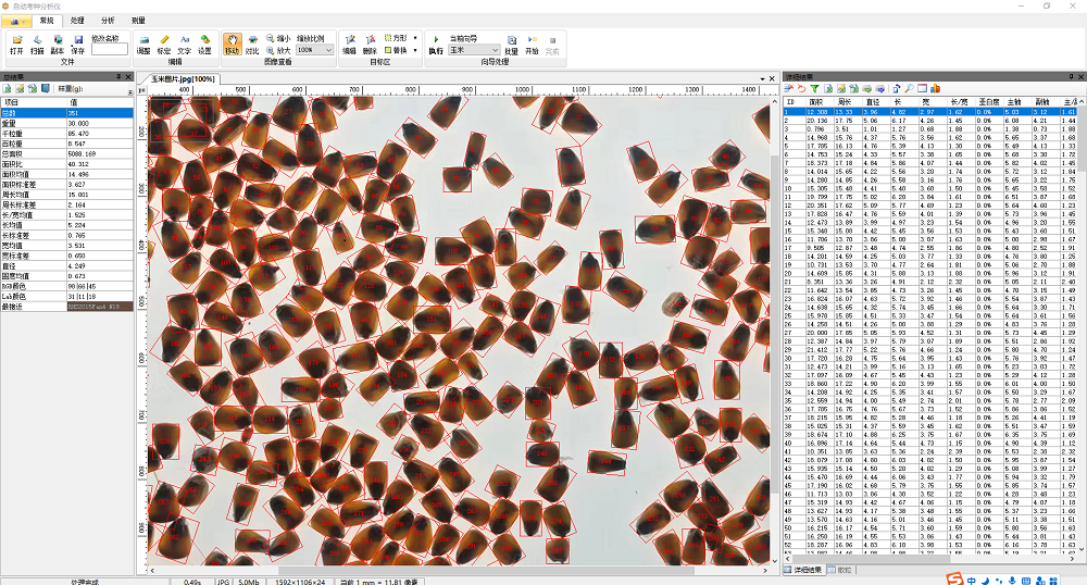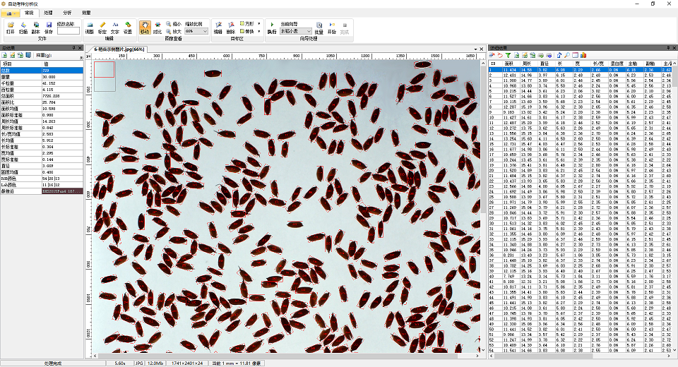 4、可根據(jù)實(shí)際需求自行創(chuàng)制一鍵自動分析向?qū)?,適用于水稻、小麥、玉米、豆類、油菜籽、瓜子、蔬菜籽等各類農(nóng)作物的自動精確考種、各類糧庫的蟲口自動計(jì)數(shù),以及出苗數(shù)、均勻度分析,顯示和輸出計(jì)數(shù)結(jié)果。